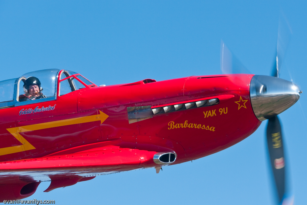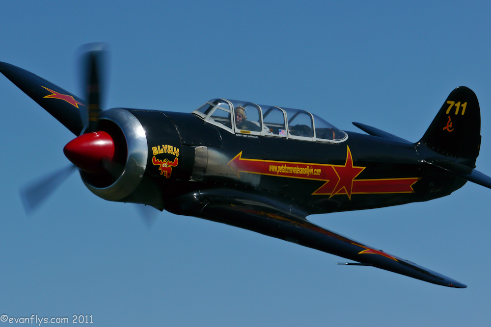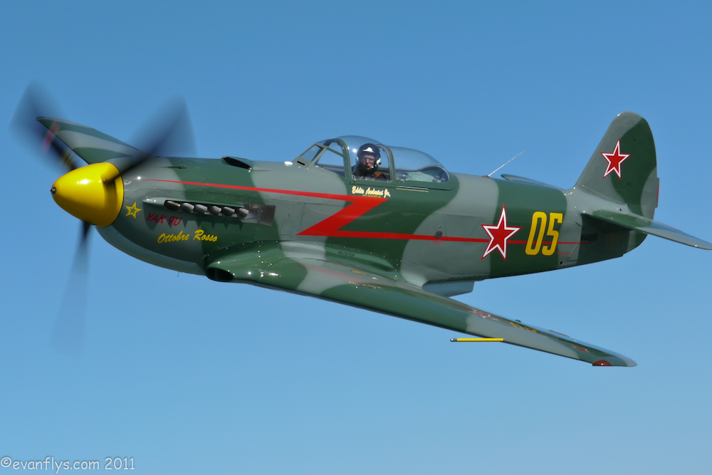 The Yak is a wonderful airplane Evan. They were made around the late 1930s. There were two different varieties that are currently flying, the Yak trainers and the lighter under 400 hp aerobatic airplanes, and then there were a number that were taken out of the Egyptian Air Force that were like Black Moose that were redone with American engines. They were picked up by John Baptiste Salis from France who exported them after getting them from behind the Iron Curtain during the 1970s. They were imported around the world and to England and the United States and they were redone. It was very difficult to get the Russian engines so they put the American engines in them. There've been a few new build Yaks built from Romania and about eight or nine from Orenburg Russia that have the in-line Allison engine. The other Yaks which were the 11's were built as a Yak 3 with a Pratt & Whitney engine in it. So we had two versions of the fighters, some with the Allison V-12 and some with the Pratt & Whitney. And then you have the Yak trainer and aerobatic lighter type airplanes like the Yak 50, 52, and 53. The Yak 18 was a version that had the M-14 engine which is about 360 hp and that could carry four passengers with an enlarged cockpit.