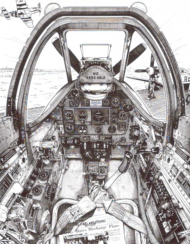 wave tops because I have no radio contact and the radar’s going to pick me up and they’re going to think I’m the enemy. I’ve got to stay below the radar. I cross the English coast on top of the waves, reach landfall and now I have to find my base. I was pretty proud that I’d gotten this far and the engine hadn’t quit. I start heading to where I think my base is but I got lost - totally lost and now I was low on fuel. Then I saw two P-51’s flying and I saw they had the insignia on the side for the 355th Fighter Group from Steeple Morden, my home base. Pure luck again. I mosey up along side of them and hand gestured to show my radio was out, and then indicated down. They got the message and took me to an airfield. I looked down and knew it wasn’t our airfield at Steeple Morden. I waved my head “no” and I pointed to them and then pointed down and they got the message and they took me home with them.