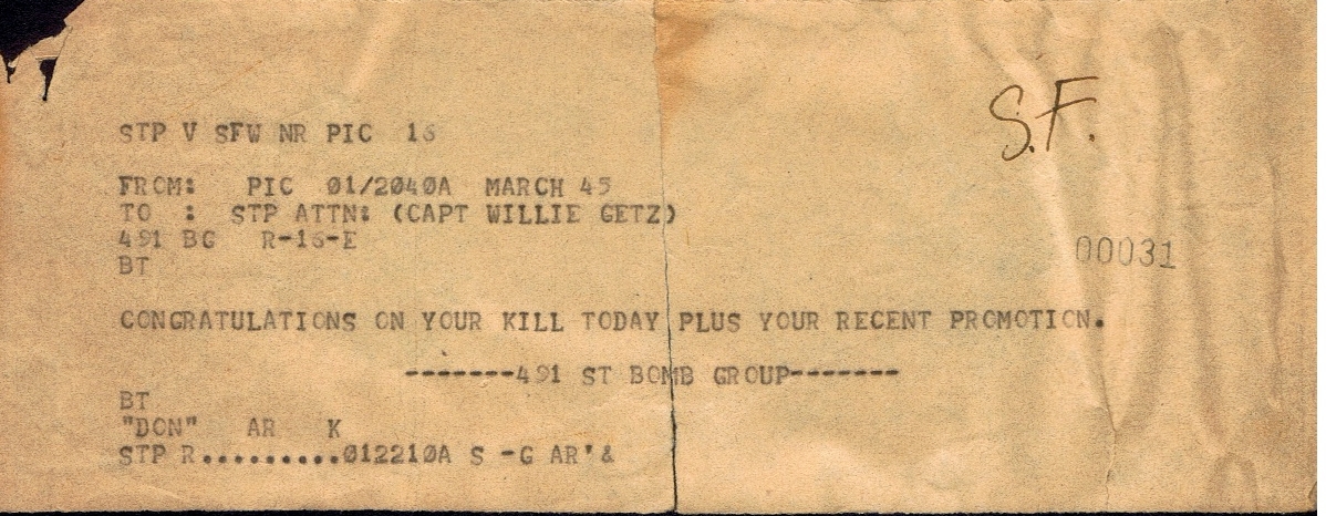 saying, “Congratulations on your kill today - 491st Bomb Group.”