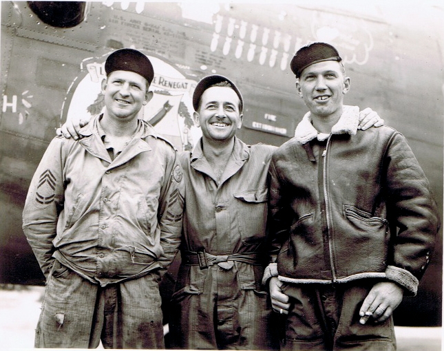 we went by train to Tucson, Arizona, for first stage crew training. On the train, all the crew guys met each other for the first time. In Tucson for first phase training is where we were assigned our navigator. We then went to phase two training at Pueblo, Colorado - combat training. While there, the 491st bomb group was activated, and we flew training missions for a few weeks. One day towards the end of our training, brand new B-24’s began landing at the base from the factory. We’d been doing most of our training in B-24D’s and there are significant differences between those and the J and H models with which the new group was equipped. We trained together as a group. This was unusual because up until this time most crews were going overseas as replacements - individual crews. We trained as a group and we went overseas as a group.